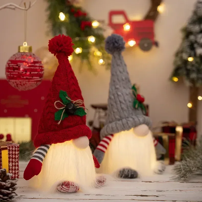 30cm Glowing Knitted Gnome Doll Couple with Led Night Light 2025 Christmas Decorations Home Xmas Tree Decor New Year 2026 Gift