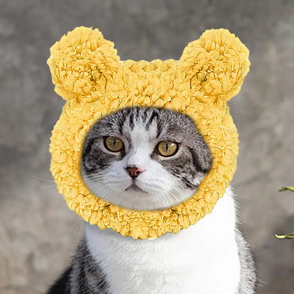 Dog Bear Hat Adjustable Soft Small Pet Headwear Bear Hat Cat Headgear Dog Headwear Pet Headwear Cute Plush Pet Hat Cozy Warm Pet