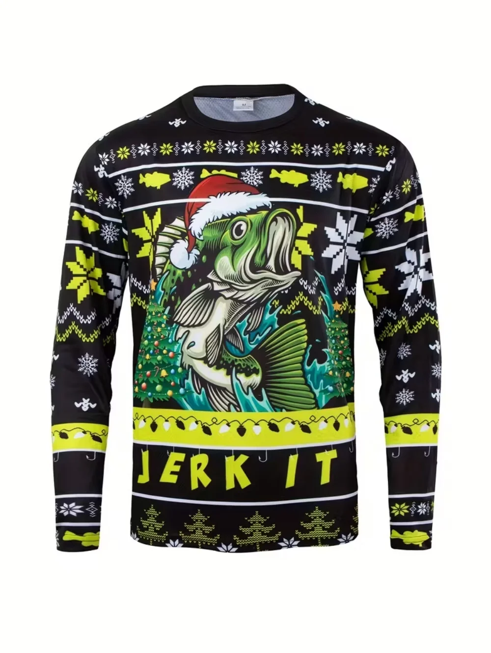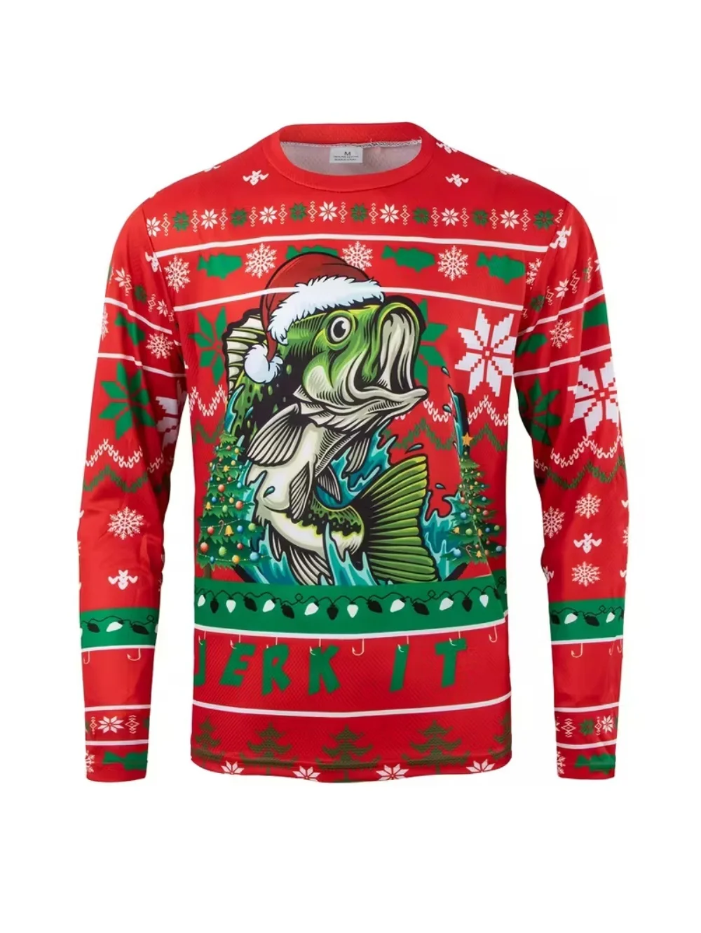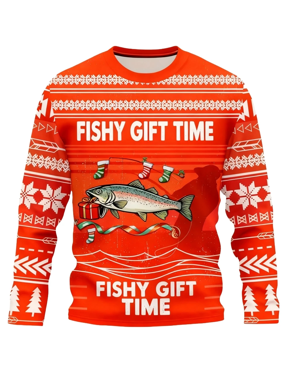 Fishing Shirt Men's T-Shirt Vintage Autumn Long Sleeve Tee Christmas Casual Oversize Top Holiday Fashion Men Clothing Tshirt Y2k