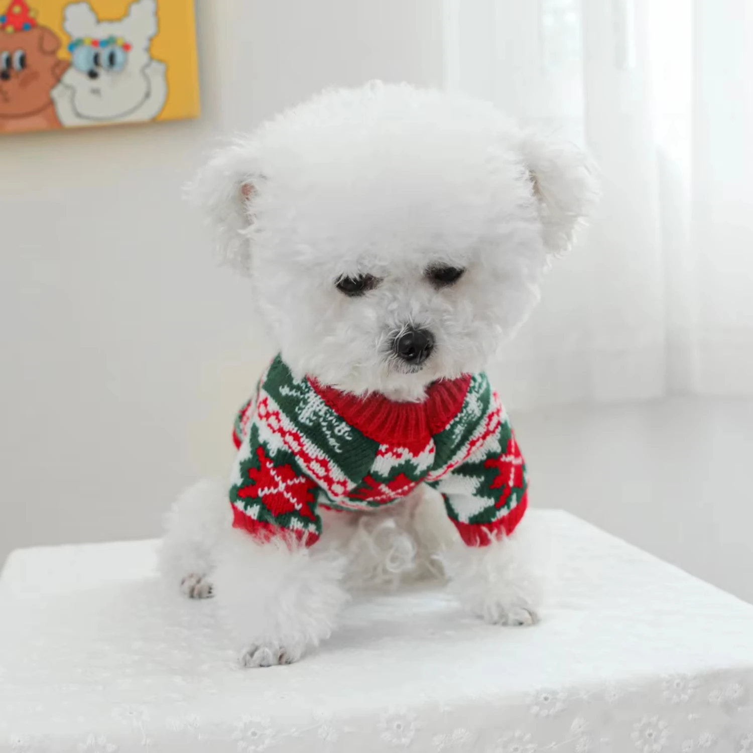 5. Make your pet the talk of the town this winter with our Dog Christmas Sweater. This stylish and customizable sweater is perfect for pet owners who want to dress their furry friend in the latest fashion trends while keeping them warm and festive during the holiday season.