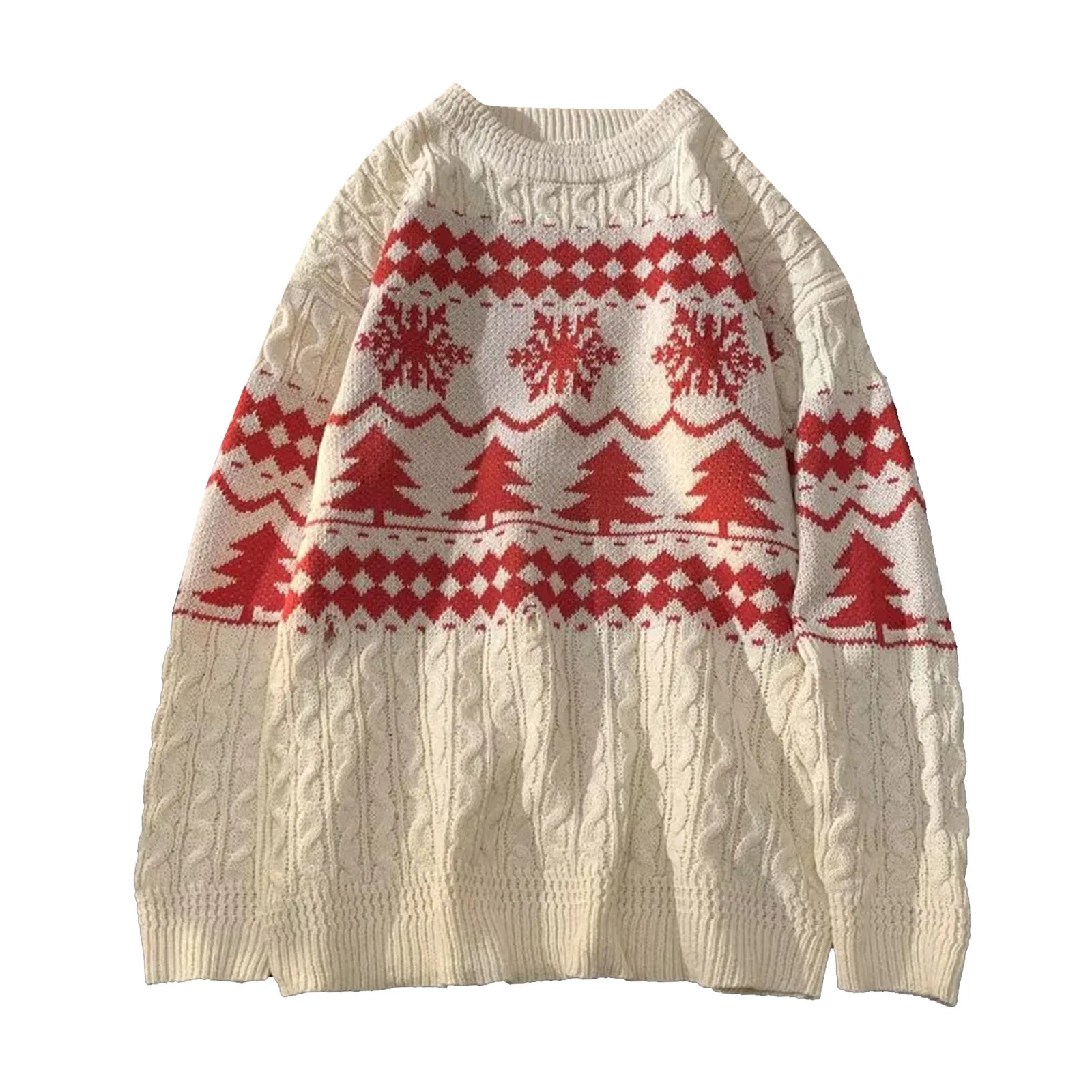 Mens And Womens Christmas Fashion Casual Personality Retro Christmas Printed Couple Sweater Pullover Sweater Coat
